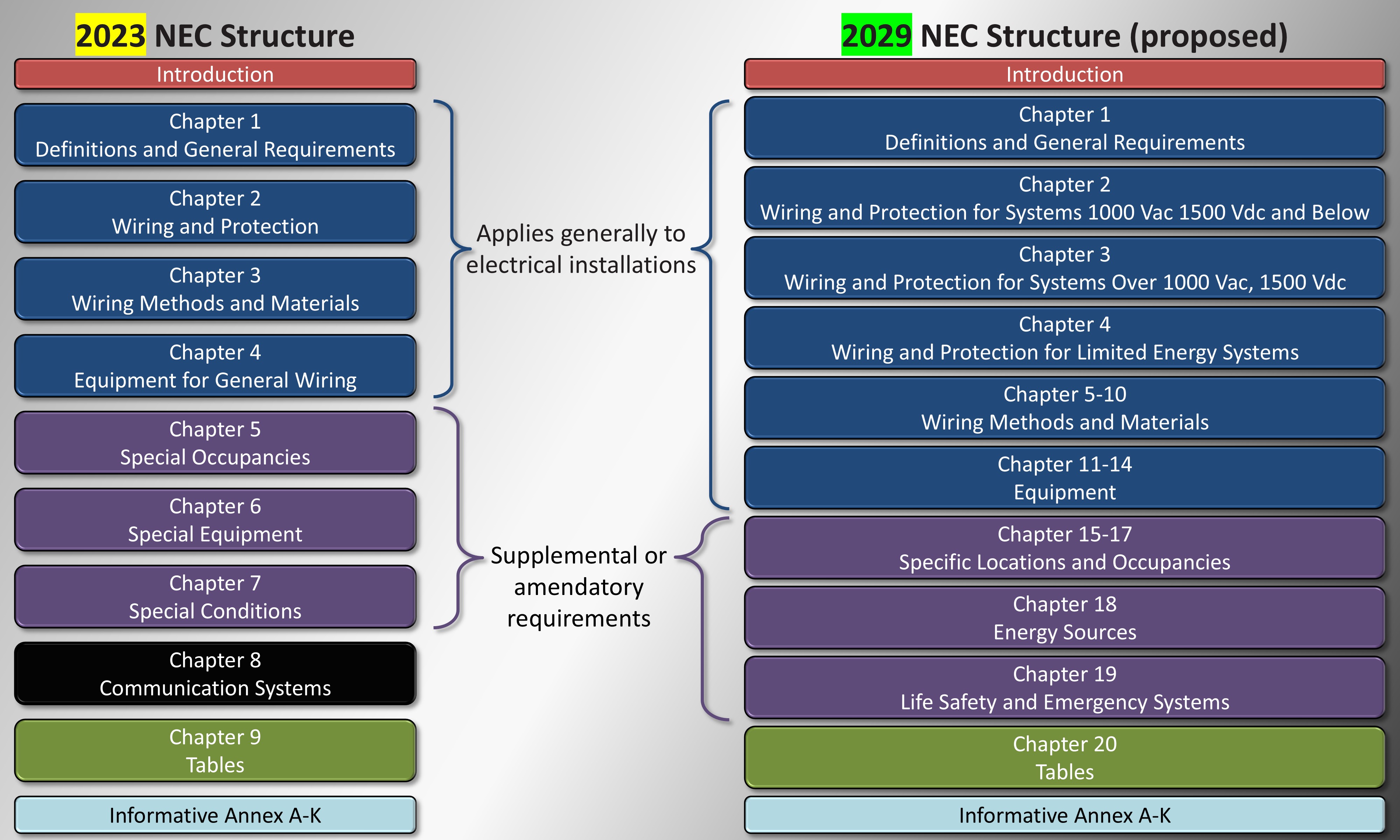 Based on the proposed 2029 NEC structure, which of the following is true?