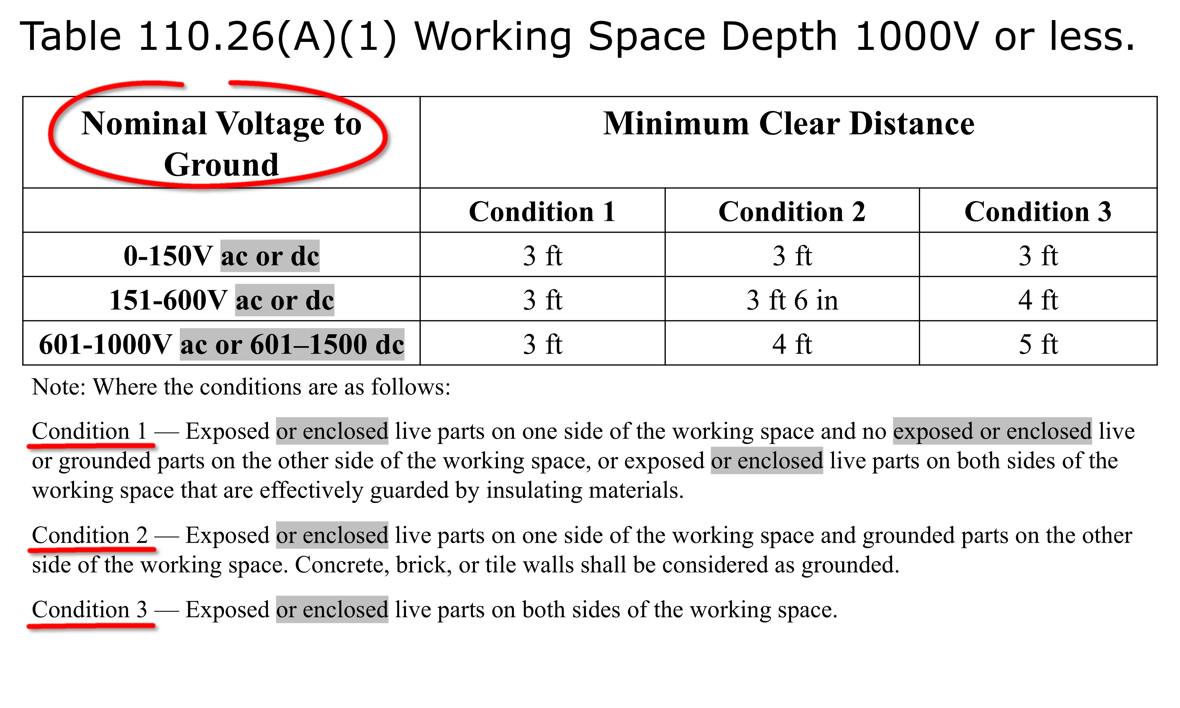 Table 110.26(A)(1) notes: