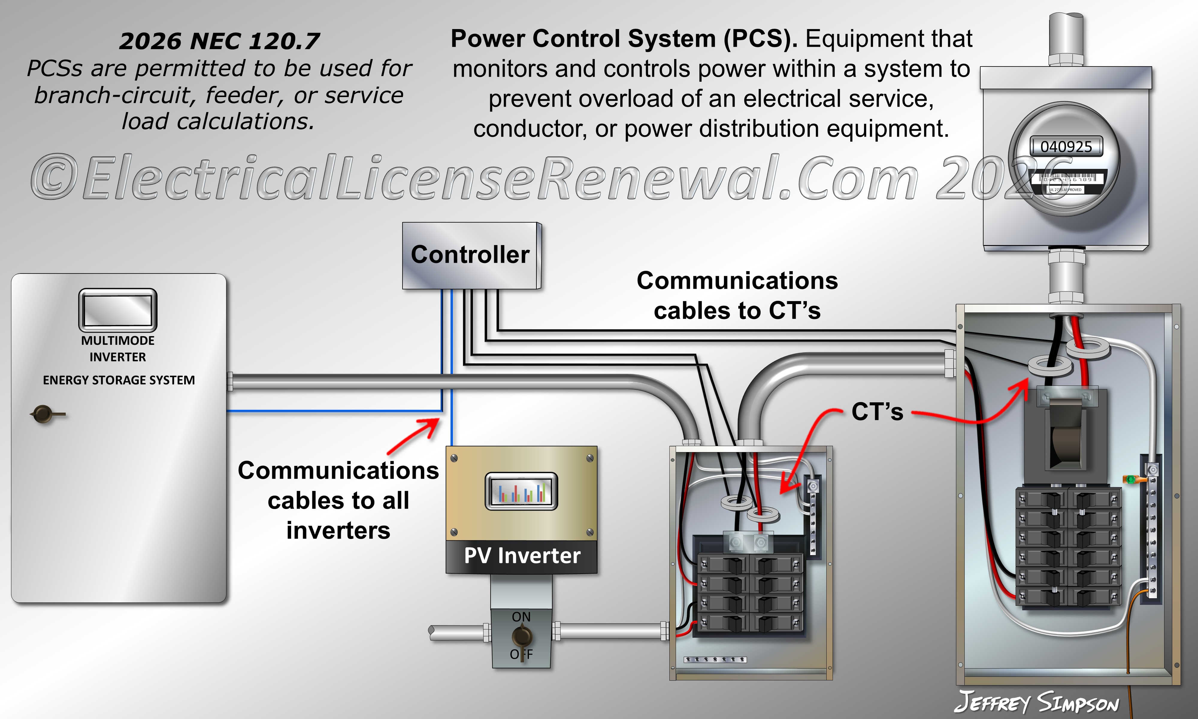 SME commentary: In the 2026 National Electrical Code (NEC), structural and terminology revisions were made concerning Power Control Systems (PCS). Specifically, the requirements previously located in Section 220.70 were relocated to new Section 120.7 within Article 120, Part I. These changes reinforce that Power Control Systems are treated uniquely for load calculations throughout Article 120 and organize the rules in a way that is clearer and more consistent with emerging technologies and standards.