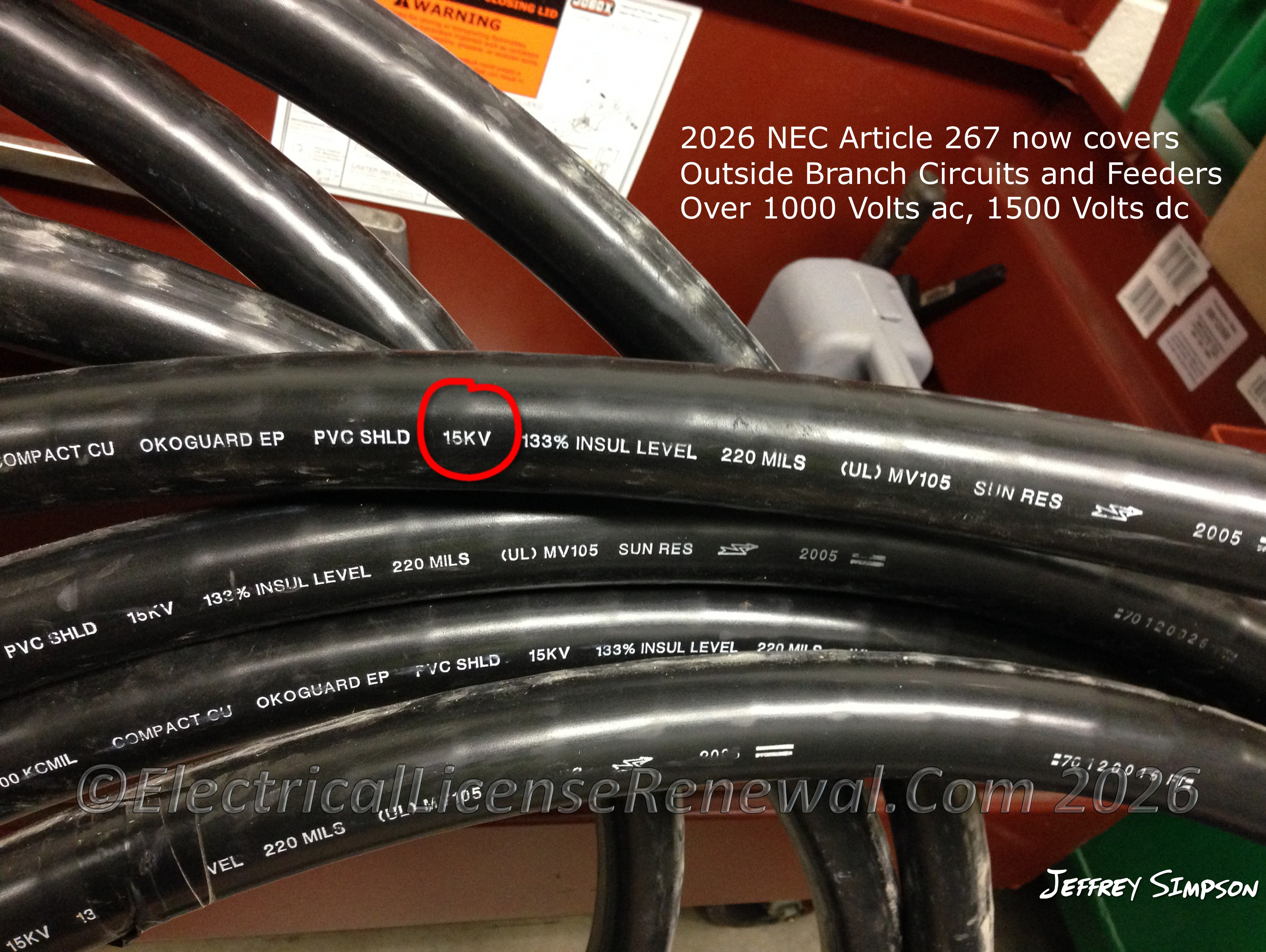 Article 267 now covers Outside Branch Circuits and Feeders Over 1000 Volts ac, 1500 Volts dc.