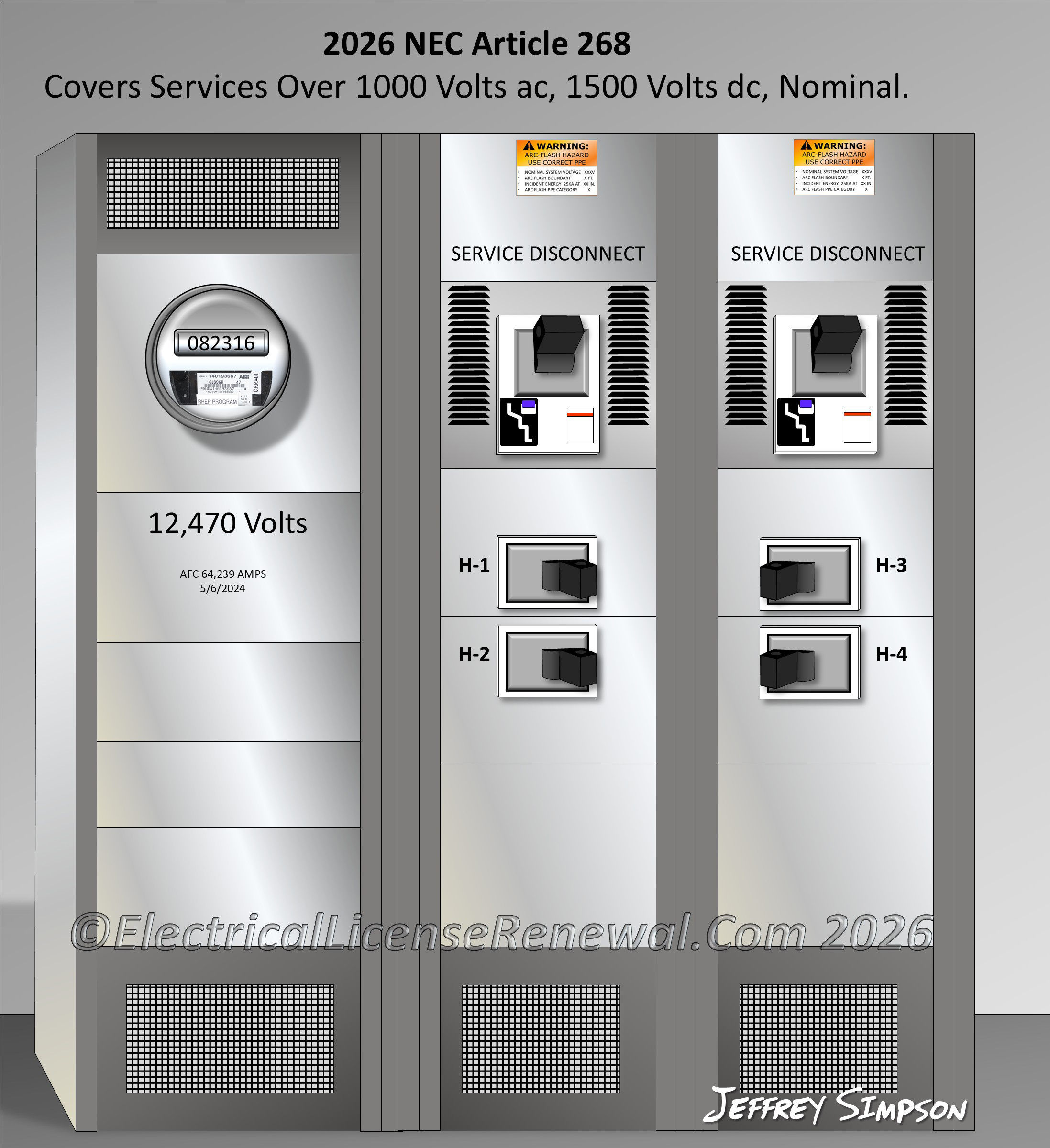 Code Change Summary: The 2026 NEC® introduces new Article 268 to cover services over 1000 volts ac and 1500 volts dc, nominal.