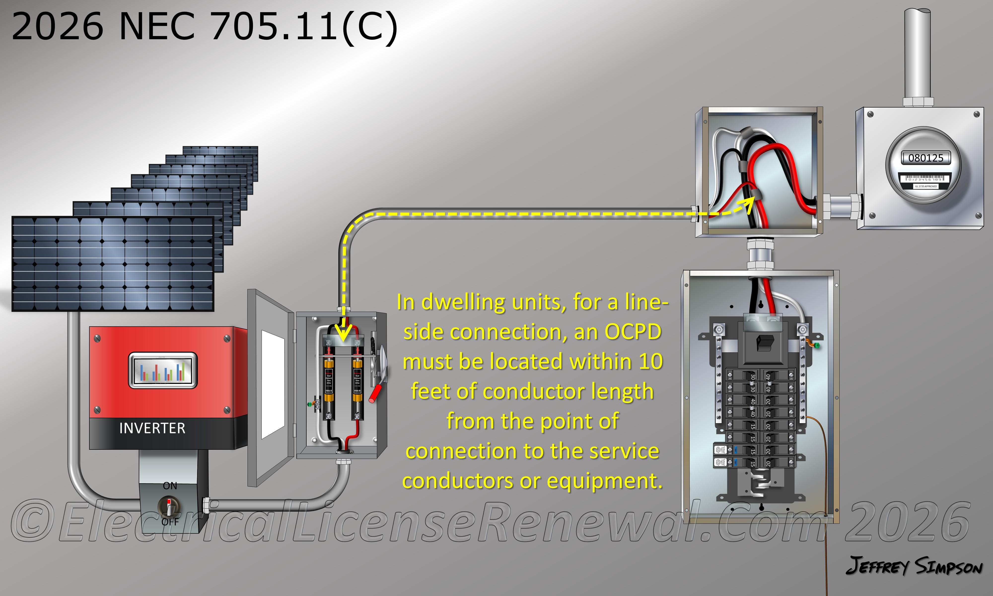 The 2026 revisions to 705.11 intend to reduce unnecessary duplication, clarify where specific requirements actually belong, and make the section easier to apply to line-side connections in real installations. By relying on the NEC’s existing structure instead of repeating it, the Code provides clearer direction for both installers and inspectors while maintaining the same underlying safety intent.