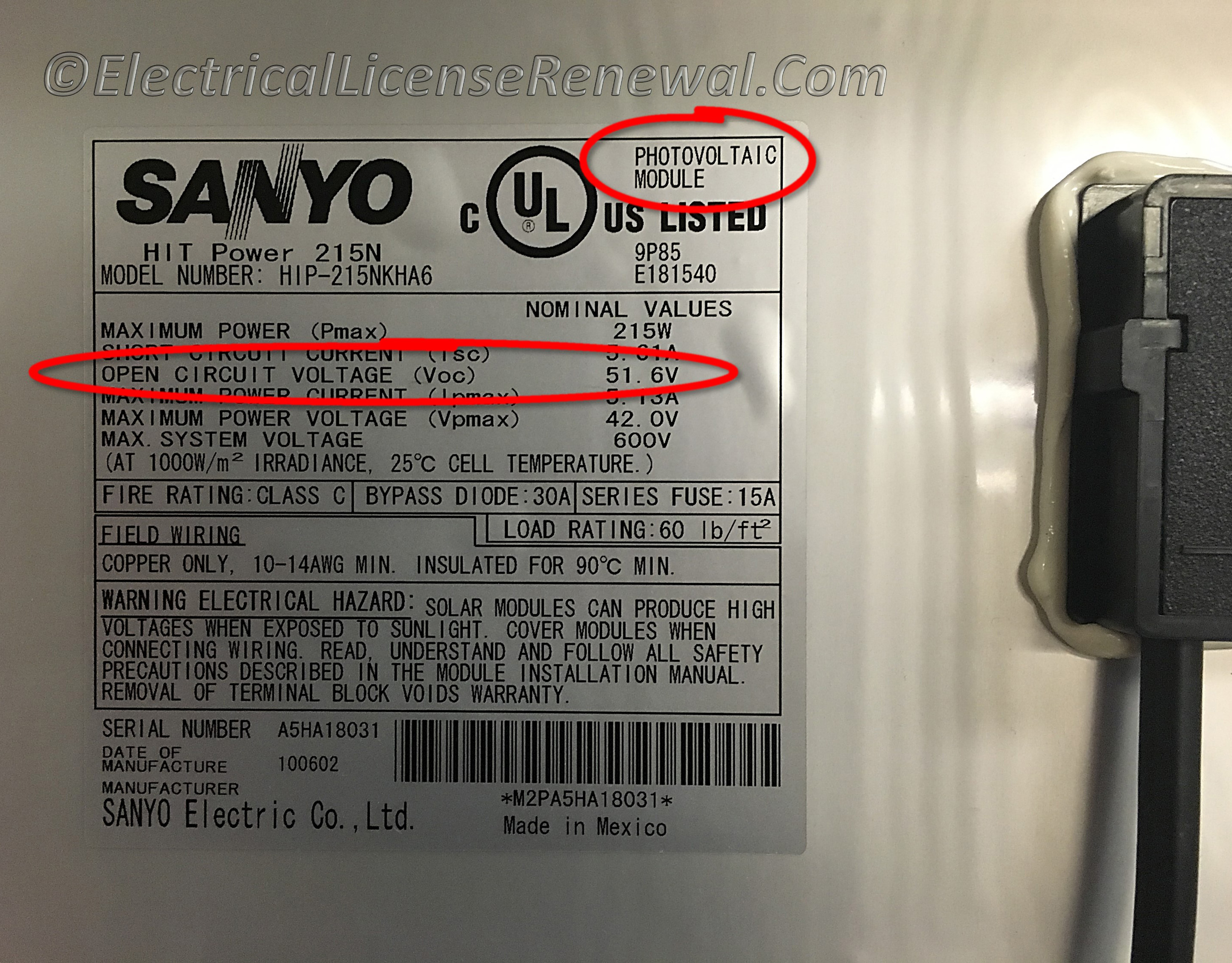 (6) The open-circuit voltage temperature coefficients supplied in the instructions of listed photovoltaic modules will be used to determine the maximum direct current photovoltaic system voltage. Otherwise the voltage will be calculated using Table 690.7 of the NEC®. For the purposes of this calculation, a temperature correction factor of 1.25 will be used unless another factor can be justified and is approved by the authority having jurisdiction.